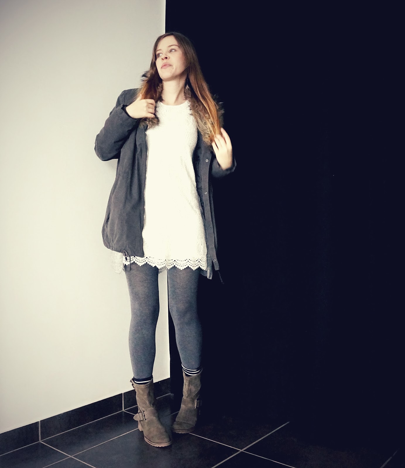 Robe (old), gilet et parka (soldes) H&M | Bottines Gemo (old) | Chaussettes COS